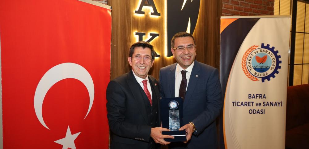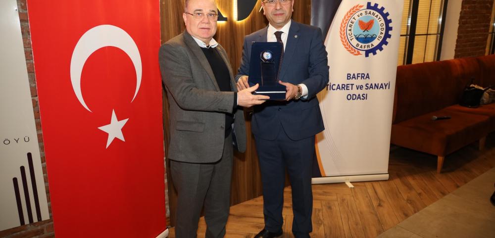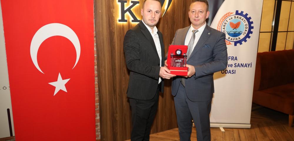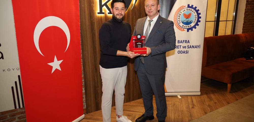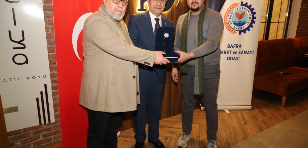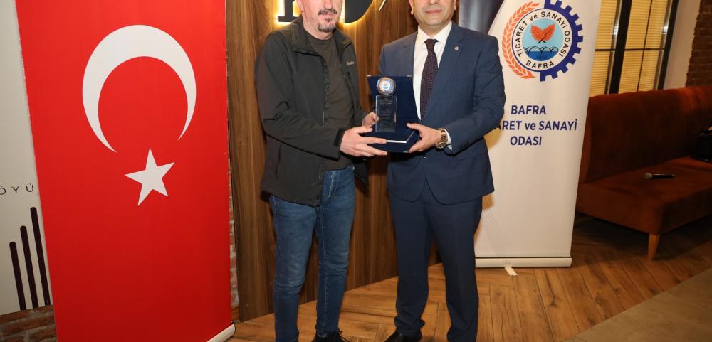 Plaketleri Bafra TSO Başkanı Serdal Sefa Kocabaş ve Bafra TSO Meclis Başkanı Hakan Yıldırım takdim etti.